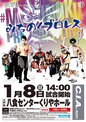 みちのくプロレス 「2017年新春闘い始め」 日時:2017年1月8日(日)14:00 会場:青森・八食センターくりやホール(八戸市) 観衆:350人(超満員札止め) 第1試合 第2試合 第3試合 セミファイナル メインイベント 第1試合 シングルマッチ 15分1本勝負 ○拳剛(フリ…