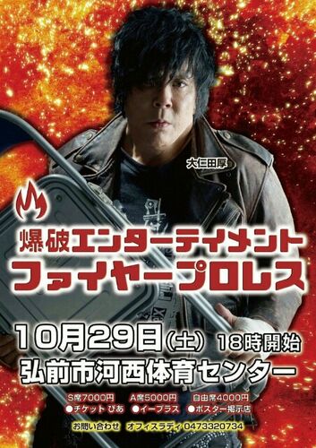 観衆:315人(超満員) ファイヤープロレス 弘前大会第1試合 江利川祐(花鳥風月) vs 魔世軍6号#ファイヤープロレス pic.twitter.com/uIdsrsEa17— 田舎のプロレス難民 (@yuikaoriyui) 2016年10月29日 ファイヤープロレス 弘前大会第2試合 ガッツ石島(ガッツワー…